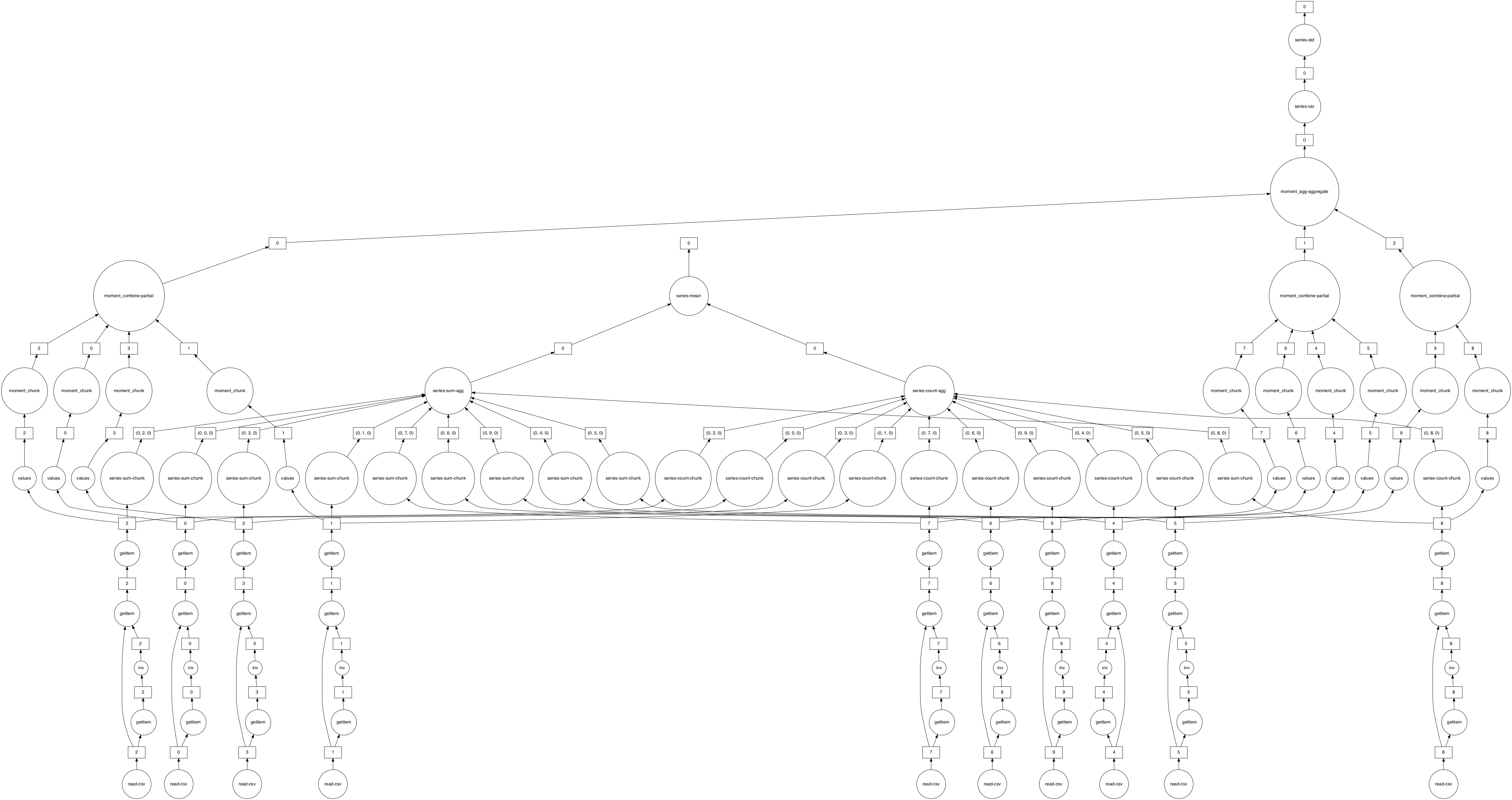 (6) You can actually see how dask is developing a plan for getting you the maximum value if you were to run your code right now. We do this with the .dask attribute, which you can run on any dask object before you’ve run .compute().